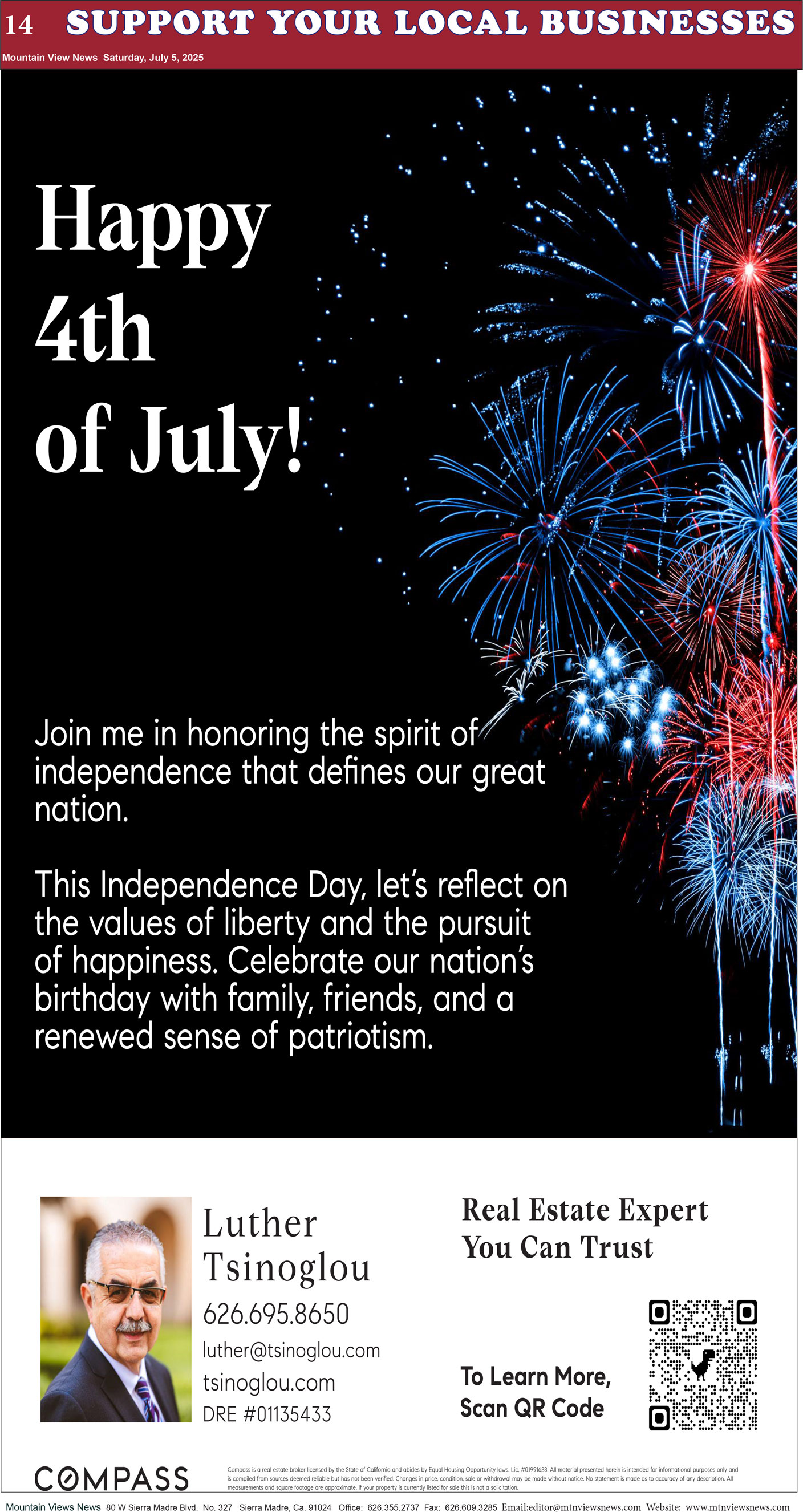 Mountain Views News 80 W Sierra Madre Blvd. No. 327 Sierra Madre, Ca. 91024 Office: 626.355.2737 Fax: 626.609.3285 Email:editor@mtnviewsnews.com Website: www.mtnviewsnews.com