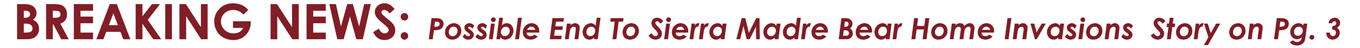 BREAKING NEWS: Possible End To Sierra Madre Bear Home Invasions Story on Pg. 3 SATURDAY, JULY 12, 2025 VOLUME 19 NO. 28VOLUME 19 NO. 28 Compass is a real estate broker licensed by the State of California and abides by Equal Housing Opportunity laws. Lic. #01991628. All material presented herein is intended for informational purposes only and is compiled from sources deemed reliable but has not been verified. Changes in price, condition, sale or withdrawal may be made without notice. No statement is made as to accuracy of any description. All measurements and square footage are ap- proximate. If your property is currently listed for sale this is not a solicitation. Jan Greteman 626.975.4033lic #01943630Judy Webb-Martin 626.688.2273lic #00541631webbmartingroup.comSOLD! SOLD! Sierra Madre Springs Forward: MOUNT WILSON TRAIL 5K RECOVERY RUN/RACE/WALK 2025 Online Registration Opens Monday, July 14th All Are Welcome! Because of the devastation on the Mount Wilson Trail (MWT) caused by the Eaton Fire and subsequent rains, the Mount Wilson Trail Race Committee is hosting a unique “Mount Wilson Trail 5K Recovery Run/Race/Walk” event within the City of Sierra Madre on Saturday, October 4, 2025, starting in Kersting Court, beginning at 8:00 am. The day’s “MWT 5K Recovery” events, includes the 5K run/race/walk, a Kids’ Fun Run, special Recovery Run merchandise available for sale, Kersting Court booths, free photo booth, and beer garden to celebrate Octoberfest. The objective of the 5K run/race/walk and related events that day is to come together as a community to raise awareness of the tremendous amount of work that needs to be done to repair the Mount Wilson Trail AND to raise money for the “Fletcher Trail Maintenance Fund”, which pays for the equipment, materials, supplies, and tools used by our wonderful Trail Maintenance Crew volunteers. Registration for this year’s once-in-a-lifetime “Mount Wilson Trail 5K Recovery Run/Race/Walk” opens on Monday, July 14, 2025, beginning at 8:00 am, and can be done online only by going to the Mount Wilson Trail Race website at https://www.mountwilsontrailrace. com and using the MWTR registration link. During the registration process, there will be an opportunity to donate money to the “Fletcher Trail Maintenance Fund” to support the trail recovery work. A suggested amount of $10 or more would be greatly appreciated. Registration can also be done through RunSignup at https:// runsignup.com/Race/CA/SierraMadre/MountWilsonTrailRace. MWT 5K Recovery Run/Race/Walk registration fees are $54.25 for adults (ages 18+) and $44.25 for youth (ages 5 – 17). All registered 5K runners receive a goodie bag and special 5K Recovery Run t- shirt. This is a rare opportunity to participate in a fun event and earn a Mount Wilson Trail Race t-shirt for those who might not otherwise consider racing on the Mount Wilson Trail itself when it reopens in 2026. Registration for the Kids’ Fun Run (ages 3 –13) is FREE and can also be done beginning Monday, July 14th, by going to the Mount Wilson Trail Race website at https:// www.mountwilsontrailrace.com and using the MWTR registration link. The Kids’ Fun Run distances are 1.0 mile (for ages 8 – 13) and .6 miles (for ages 3 – 7). Parents may accompany their younger children during the Kids’ Fun Run. All Kids’ Fun Run children participating receive a Kids’ Fun Run T-shirt and finisher’s ribbon. First run in 1908, the Mount Wilson Trail Race is the second oldest trail race in California and has been run annually since 1965. The MWTR course is 8.6 miles from Kersting Court, up Baldwin Ave., right on Mira Monte Ave., left where the MWT starts, to Orchard Camp and back. The total elevation gain is over 2,160 feet. For questions regarding the 2025 Mount Wilson Trail 5K Recovery Run/Race/Walk, please contact Pete Siberell, MWTR Committee Director, at pete.siberell@santaanita. com or call the City of Sierra Madre Community Services Department at (626) 355-5278. Please join us in donating to the “Fletcher Trail Maintenance Fund,” which supports our dedicated Trail Maintenance Crew volunteers with the necessary equipment, materials, supplies and tools to continue their work on the MWT. The damage is so great that to secure, re-engineer, and replace sections of the Mount Wilson Trail will require an even greater amount of additional equipment, materials, supplies, and tools, well beyond what has been used in the past. Your donation of any amount is greatly appreciated and makes a real difference for this historic trail, running event, and our community! Making a tax-deductible donation to the “Fletcher Trail Maintenance Fund” can be done by using the PayPal QR code below or by sending a check payable to the “Fletcher Fund c/o SMCF.” The mailing address is P.O. Box 716, Sierra Madre, CA 91025. All donors to the “Fletcher Trail Maintenance Fund” will receive a written tax-deductible acknowledgement letter. To donate by PayPal, please scan the QR Code on the right: All labor on Mount Wilson Trail and Bailey Canyon Trail is done by community volunteers, who work tirelessly and continuously to repair and maintain the trails to keep them open and safe for public use. The necessary equipment, supplies and tools used by the volunteers are paid for with tax-deductible community donations to the Fletcher Trail Maintenance Fund, as neither the City of Sierra Madre nor the US Forest Service provides any funds for supplies or labor. Without the work of the Volunteer Trail Maintenance Crew, Sierra Madre’s trails would become permanently impassable. Thank you very much for your support in the protection of this important and valuable community resource. Your donation allows work on the MWT to continue to ensure that the Mount Wilson Trail can re-open and be safe for public use for years to come. EL1•s AUTO SERVICE Your Trusted Auto Care Partner CERTIFIED SMOG TESTS & REPAIRSB:DD am - 05:00 pm 125 W. SIE